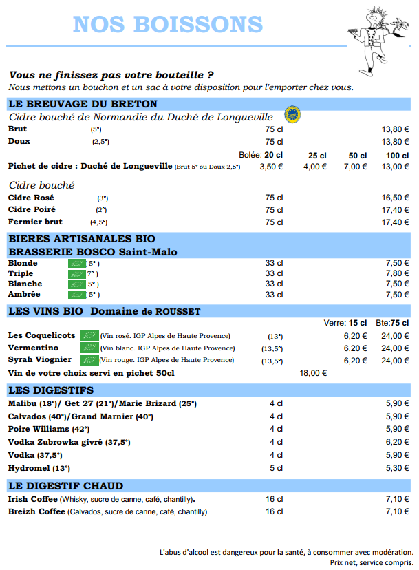 Un verre de cidre ou de vin peut aussi harmonieusement accompagner vos plats.